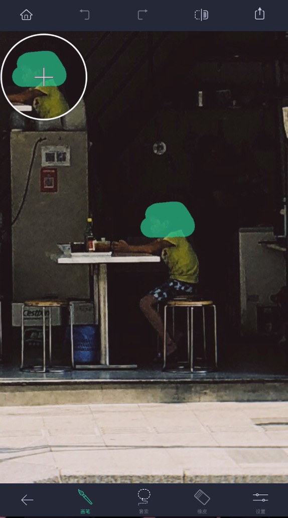 除此之外,TouchRetouch 在用户涂抹选择时,画面的左上角会出现一个「放大镜」。就像相机的放大对焦辅助一样,这个放大镜能够进一步放大你的选中区域,配合可调大小的光标,要很仔细地选择清除目标也不是难事。