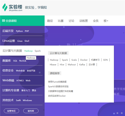 又一个中文学编程的网站!网站的banner就写着“做实验,学编程”,这里的编程学习也是十分齐全的。还有一个“讨论区”,有问题想咨询、想分享都可以到这里来,大家一起学习的氛围会让你更有动力去学吧。