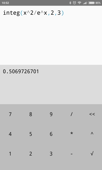 可以看到,就算是算式涉及高等数学的内容,但在Calci计算器要计算,也是轻而易举的。值得一提的是,Calci计算器本身为各种运算预设了格式,算定积分你只需要填入字母数字即可,并不需要慢慢自己输入括号、逗号等等,这也减少了很多出错的可能性。如果想要调用之前的结果,只需要双击输入框,就可以查看到历史记录,直接点击历史记录就能够把内容填入到输入框,这很方便需要多步的运算。