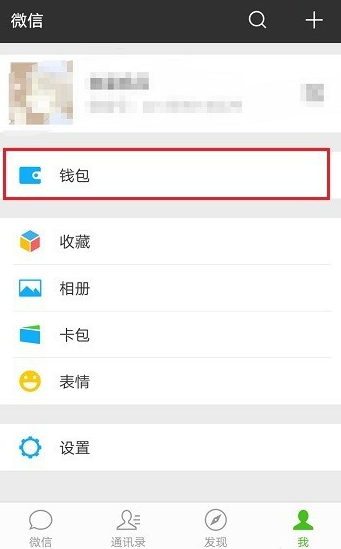 打开手机微信,点击底部的“我”,选择“钱包”,如下图所示: