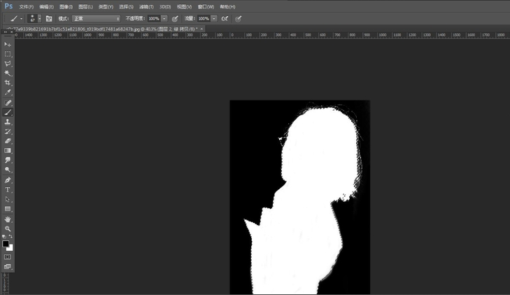 5、用画笔将要抠出来的部分改成黑色,