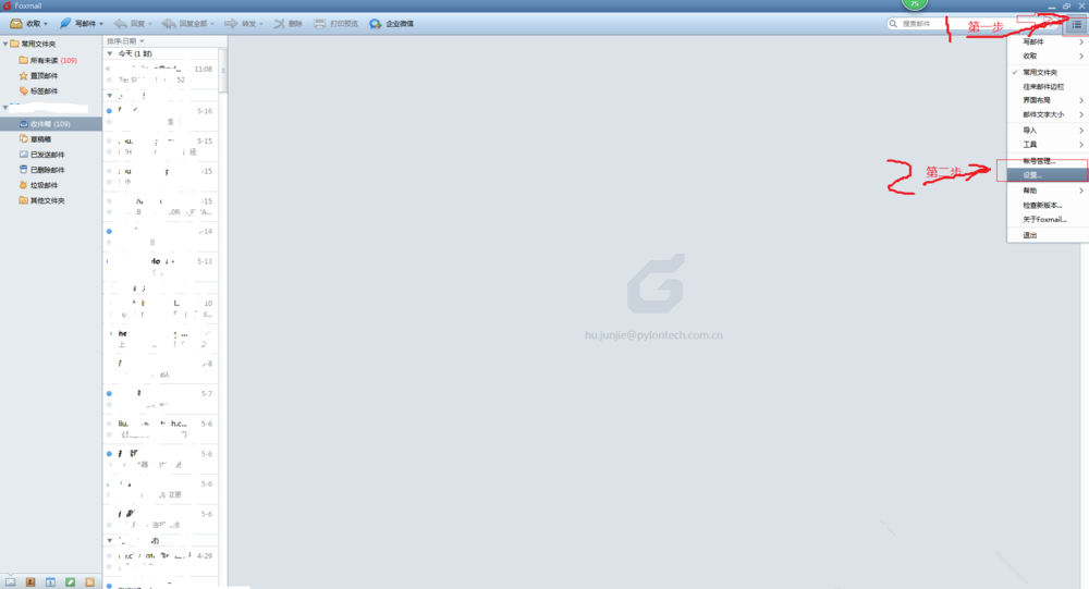 打开Foxmail,登录账号,进入界面,点击右上角图标,弹出菜单列表,点击【设置】选项,