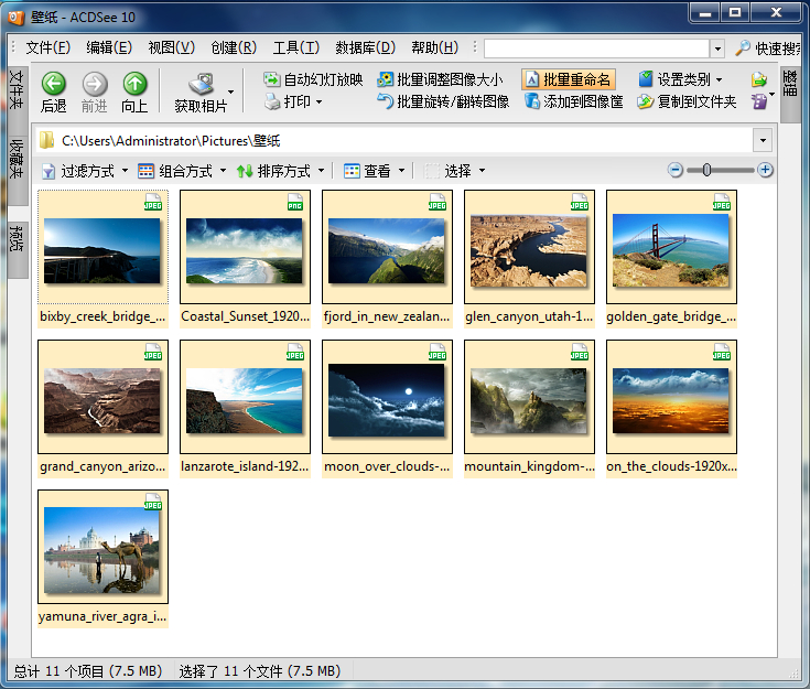 打开ACDsee,进入界面,导入图片文件,选中需要处理的图片,在工具栏中点击【批量重命名】,