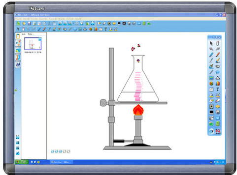 IQBoard拥有海量资源库,提供了各种模板(都是CDF格式文件)、图形形状,用户可以通过电子白板软件实现书写、擦除、标注(文字或线条标注、尺寸和角度标注)、绘画、拖动、放大、拉幕等操作。