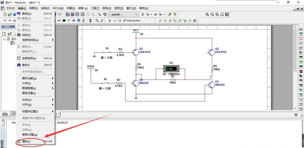 在菜单栏中点击【编辑】选项,弹出列表,点击【属性】,如图,