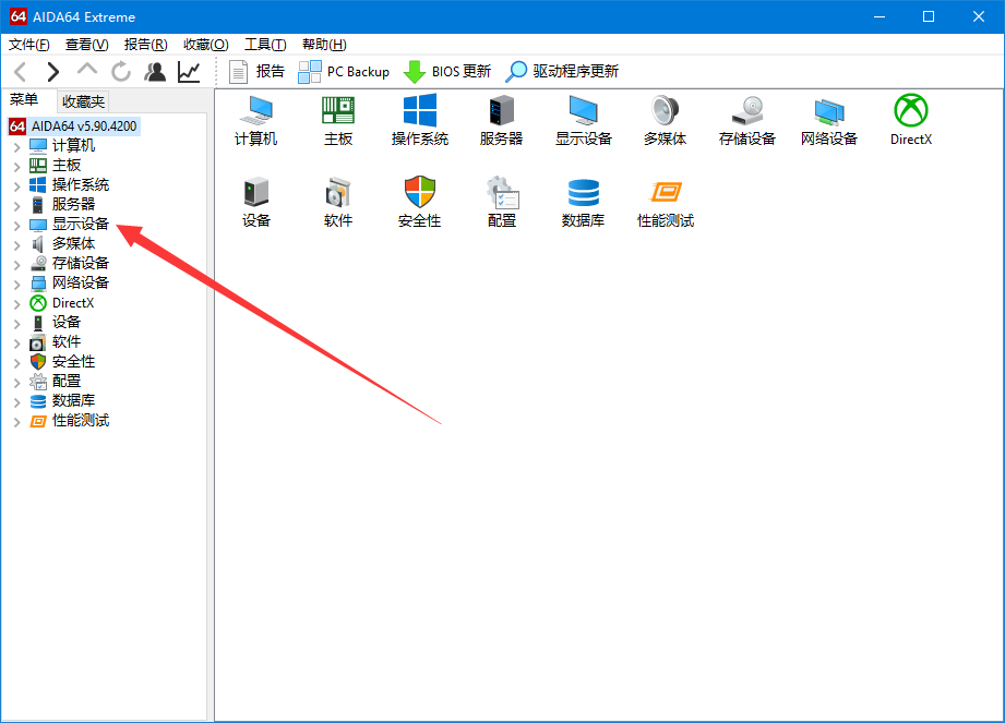 运行AIDA64软件,进入主界面,如图,点击【显示设备】,
