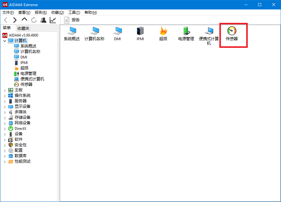 回到主界面,在右侧列表中双击展开【计算机】选项,点击【传感器】,或者在右侧窗口中点击【传感器】,