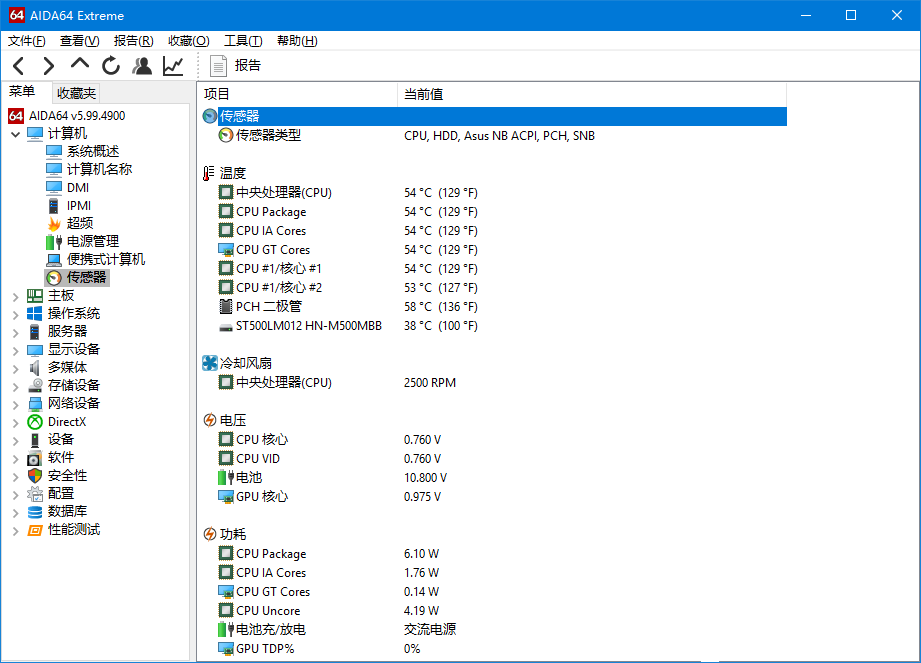 提示“正在收集传感器信息”,等待一会儿,即可查看本机CPU和主板等温度数据,如图,