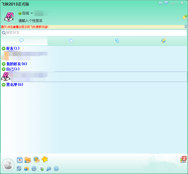 双击运行飞秋2013,进入界面,如图,界面风格类似QQ,