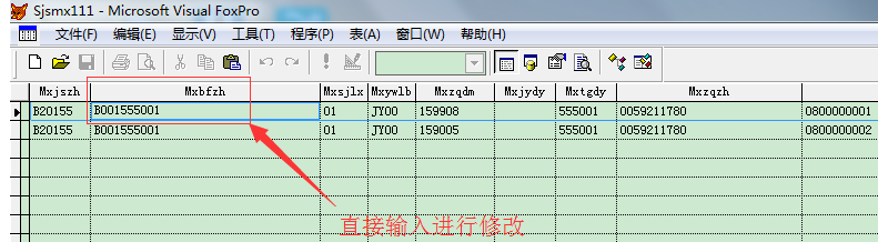 打开Visual Foxpro软件,进入界面,导入DBF文件,如果需要修改指定内容,直接移动光标进行选中,即可修改,