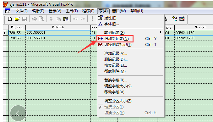 在菜单栏中点击【表】——【追加新记录】,即可新增相关信息,