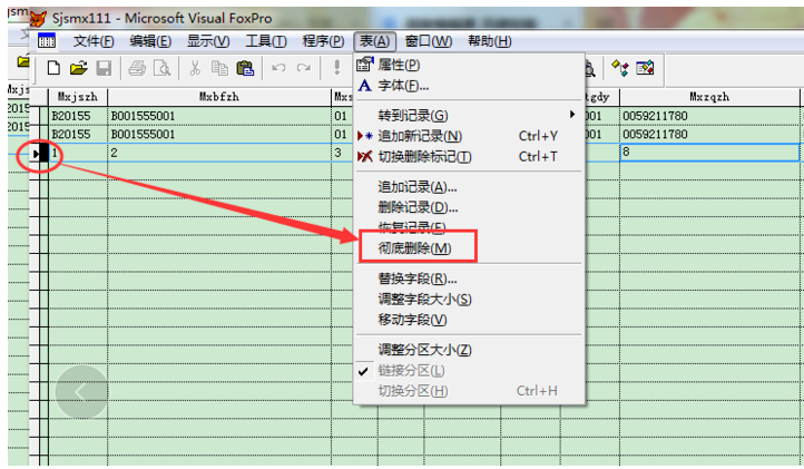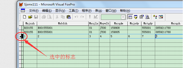 如果想要删除一行记录,先选中这一行内容,标志如图,