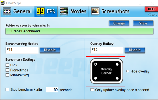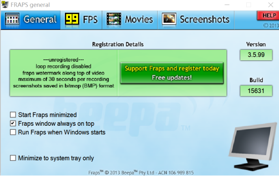 1、打开电脑上安装的“Fraps”软件,界面如下: