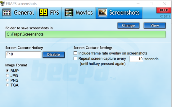 4、在软件界面点击“Screenshots”,可以进行截图参数(存储路径、格式等)的设置,如下图: