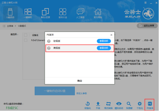 2、在弹出的PE版本界面,点击“高级版”,如下图: