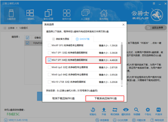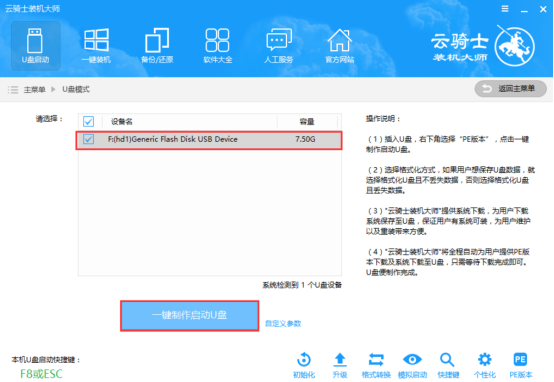 9、在电脑上插入U盘并按下快捷键(红色选框标注的部分)启动U盘以便“云骑士”确认U盘,如下图: