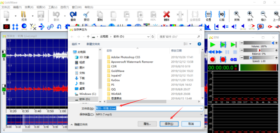 5、完成上述操作后,对新剪辑的音乐文件进行保存。保存时,重新命名。这样就完成了goldwave剪辑音乐的全部操作了。