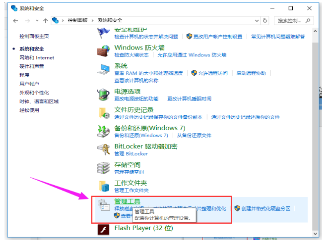 进入如下界面,点击【管理工具】,