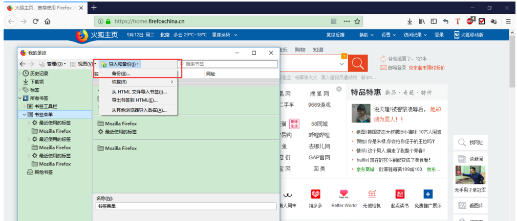 火狐浏览器如何设置备份保存书签?