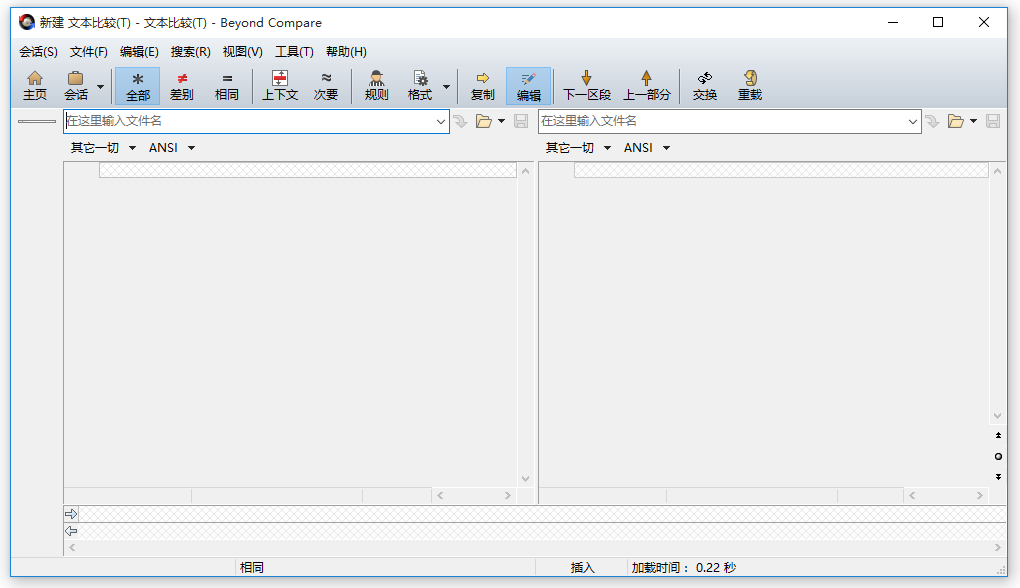 打开Beyond Compare软件,进入主页,点击【文本比较】功能,弹出面板,如图,依次导入两个文件,软件支持对比PDF文档和Word文档,