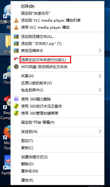 2、另外,很多人习惯将一些常用文件、文件夹放在桌面,选中任一文件夹,鼠标右击,弹出菜单,点击【选择左边文件夹进行比较】,