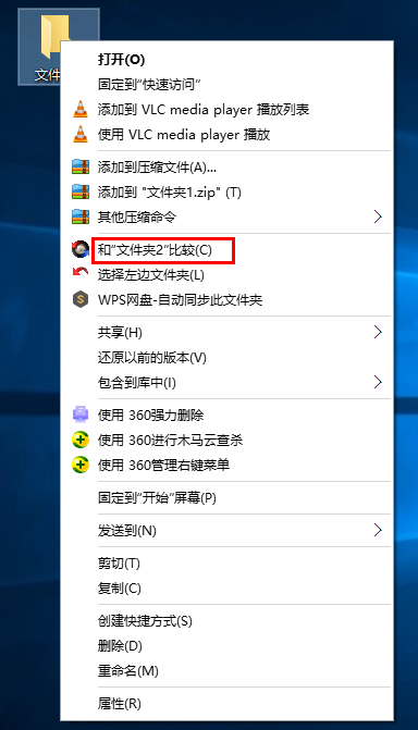 然后,选中另外一个文件夹,鼠标右击,点击【和“文件夹2”比较】,如图,