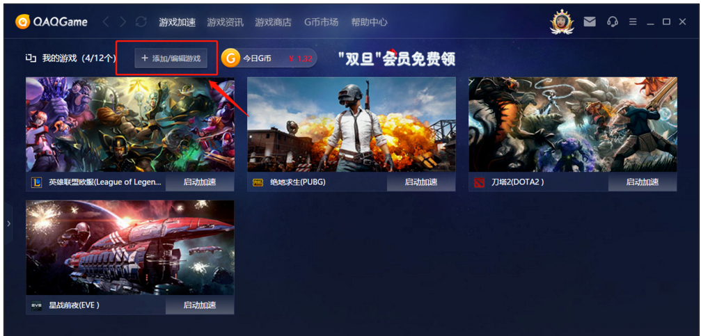 输入账号,进行登录,然后进入加速器,如图,点击【添加/编辑游戏】,搜索找到魔兽世界,进行添加,