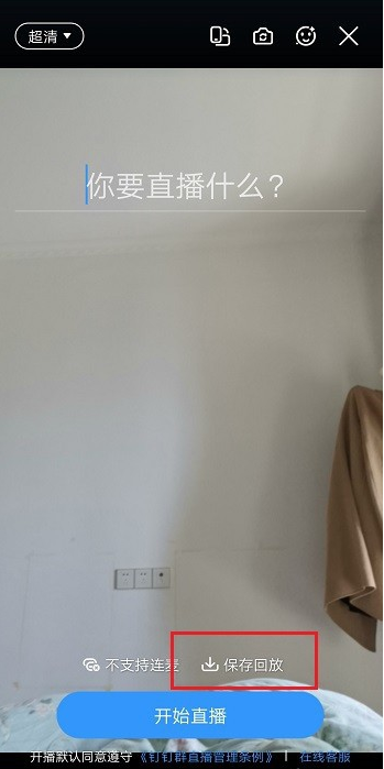 2、进入群直播界面,如图,默认【保存回放】,注意,如果你点击了该选项,即不保存回放,