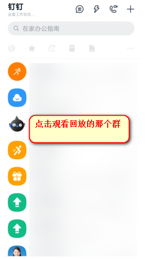 1、打开钉钉APP,进入主页,在下方点击【消息】功能,找到想要回放直播的群聊,点击它,
