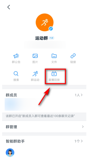 3、进入以下界面,你可以看到【直播回放】功能,点击它,