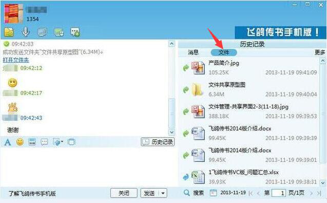 4、飞鸽传书软件传输文件完毕后,用户还可以点击“文件”来查看自己所传输的所有文件。