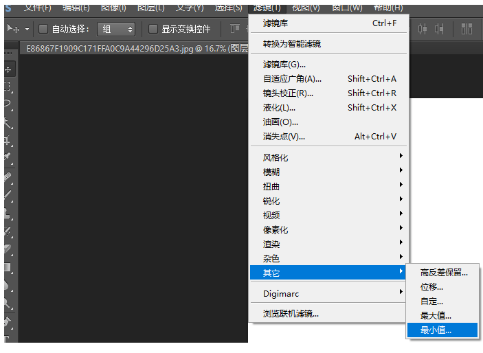 在菜单栏中点击【滤镜】——【其他】——【最小值】,弹出对话框,设置半径为2,点击确定,图片效果就发生了改变,