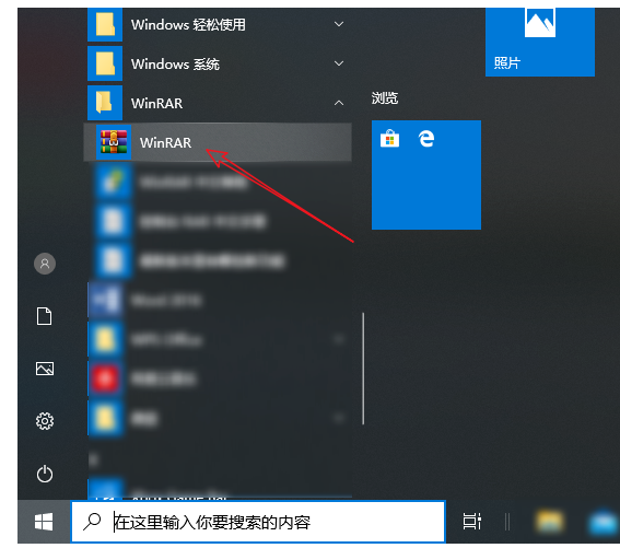 2、如果存在其它原因,你可以尝试使用专业软件来修复问题,呼出开始菜单,找到WinRAR文件夹,点击打开,