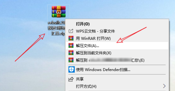 在目标路径中找到已经修复的压缩包文件,如图,文件名前面多了“rebuilt”字样,鼠标右击,选择【解压文件】,即可成功解压文件。