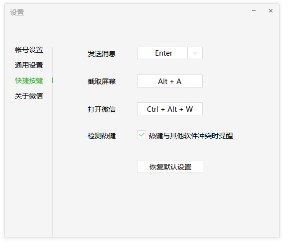 打开设置窗口,如图,点击【快捷按键】,默认的截取屏幕快捷键是【Atrl+A】,你可以自行修改。