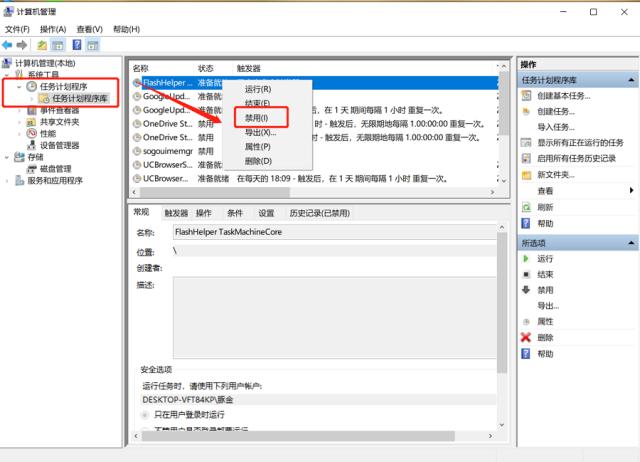 2、打开计算机管理窗口,如图,在左侧点击【系统工具】——【任务计划程序】——【任务计划程序库】,然后将右侧面板关闭所有的状态信息。