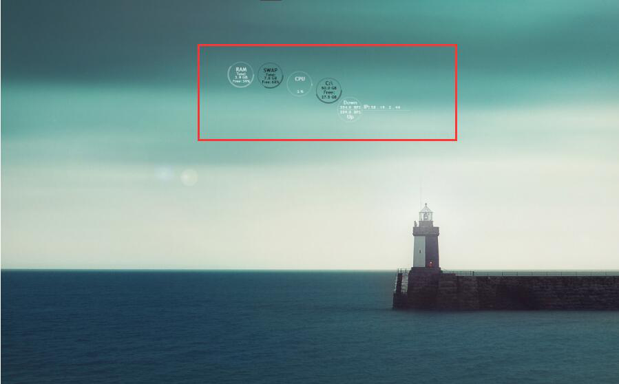 8、此时,用户就可以发现雨滴桌面Rainmeter做出来的桌面多了一个时钟,而且这个时钟是动态的,灯塔的顶端也有所变化。