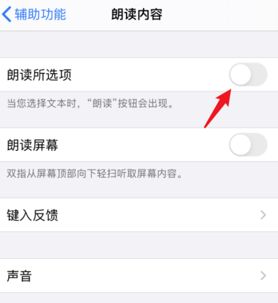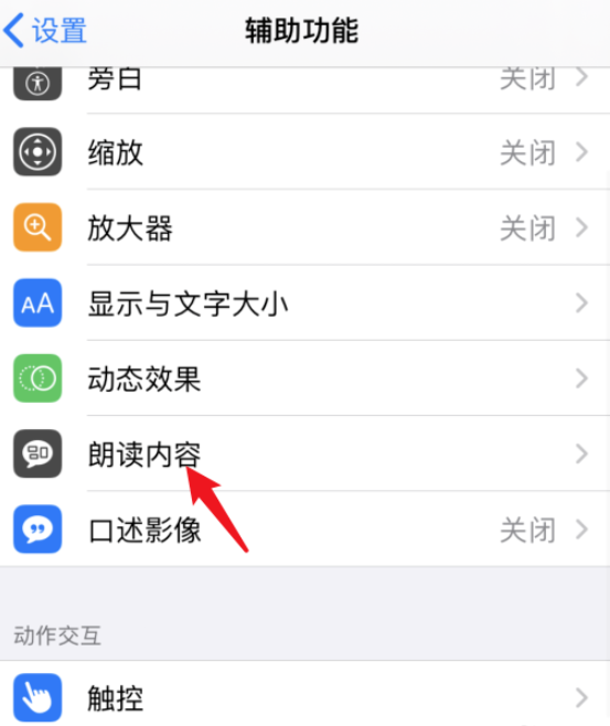 进入以下界面,下拉点击【朗读内容】功能,