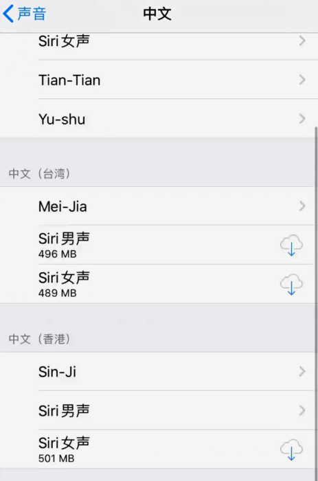 点击【声音】,你可以选择Siri男声或者Siri女声,