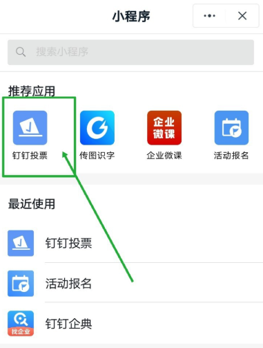 你可以看到【小程序】选项,点击它,如图,点击【钉钉投票】,