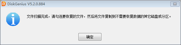 6、文件扫描完成,弹出如下窗口,点击【确定】。