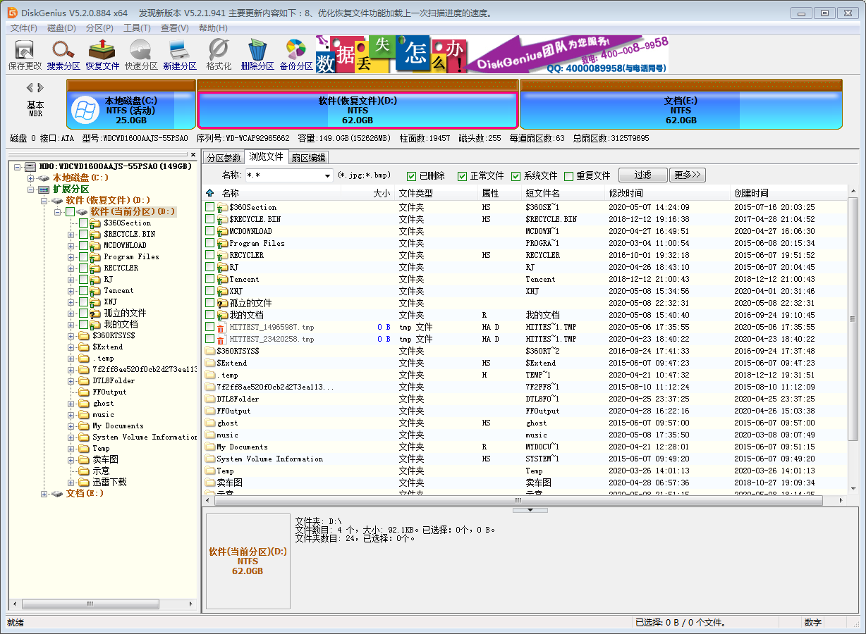 用户在使用电脑的时候免不了遇到误删文件的情况,如果未清空回收站,还可以通过还原恢复文件,但大多数情况是回收站被清理或者找不到误删的文件,这个时候我们可以使用DiskGenius轻松恢复删除的文件。