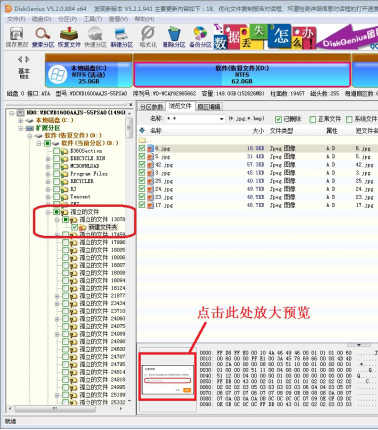 10、一般查找文件时在原来文件夹下查找,如果没有则到“孤立的文件”中查找。比如下方在“孤立的文件”中找到了误删除的文件,可以点击图片放大预览。然后勾选要恢复的文件。