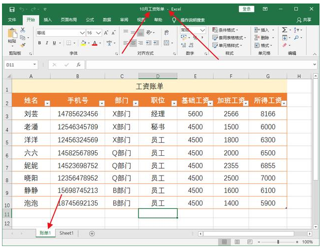 3、在电脑桌面上打开名为“10月工资账单”的Excel工作簿,界面如图,数据以及格式已经实现复制粘贴。