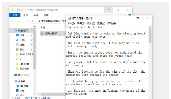 翻译完成,出现提示,点击【前往导出文件位置】,即可查看翻译之后的TXT文档。