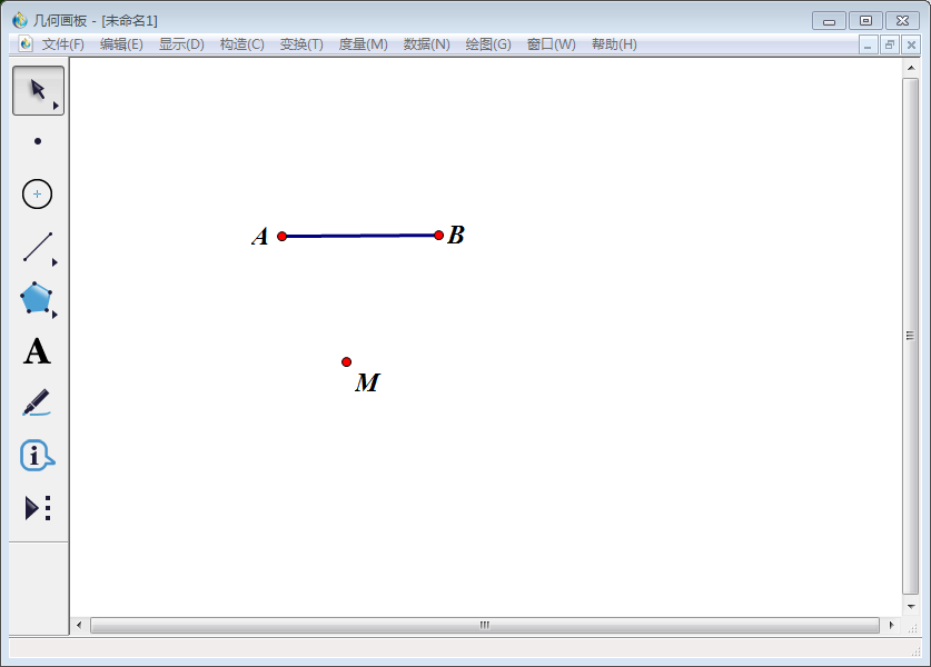 2、使用左侧工具栏中【点工具】,在线段AB外画一点,标记为M。