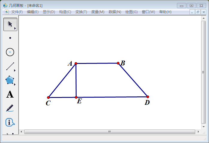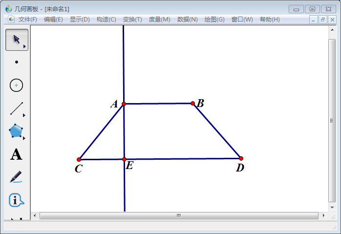 9、使用【线段直尺工具】连接线段连接AE,得到高为AE的梯形ABCD。