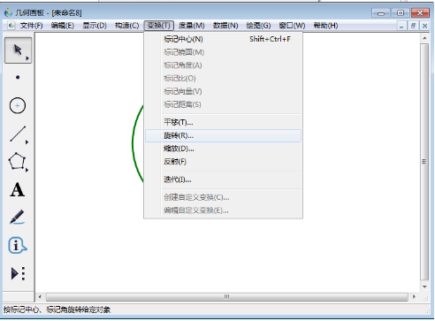 3、使用【移动箭头工具】选中圆上的点A,点击在上方菜单栏中【变换】,在其下拉菜单中点击【旋转】。