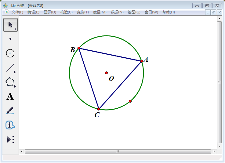 8、得到圆的内接正三角形,将该三角形剩余的那个点标为C。