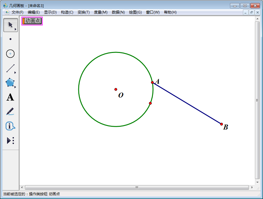 5、演示点在圆上运动的动画课件就做好了。点击画板上【动画点】,就可以观看了。再次点击该按钮,动画停止。